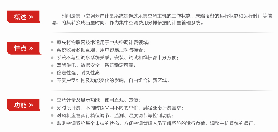 中央空調計費系統是對各用戶的空調用量進行獨立計量和收費,以計量為基礎、收費為核心的系統。使用中央空調計費系統,能促進節約能源,提高節能效益,減 少主機系統負荷,延長設備使用壽命;可實現空調能源商品化,用戶’“多用多交,少用少交”。滿足用戶按需使用、按量收費的需求,有利于節能管理,符合國家節能政策。按照建筑物及業主使用的實際情況集中空調計費系統分為以下三大類: